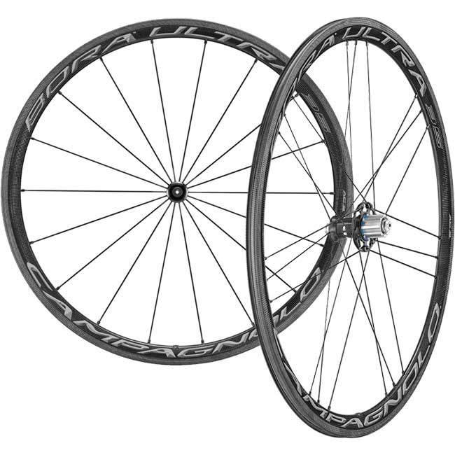 Campa Bora Ultra 35 Vorderrad, Campa Bora Ultra 35 Hinterrad, Schnellspanner, BR-BO500 Bremsbelaege fuer Campagnolo Bremsen und Laufradtaschen