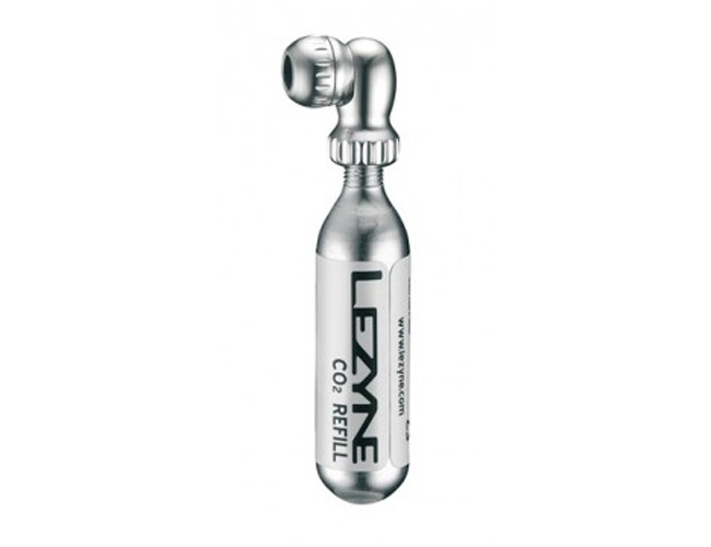 Kompakte, CNC-gefraeste Kartuschenpumpe mit Twin Slip Kopf fuer Schrader und Presta Ventile im 90 Grad Design. Fuer CO2 Patronen mit Gewinde. Auch mit 25g CO2 Kartuschen kompatibe