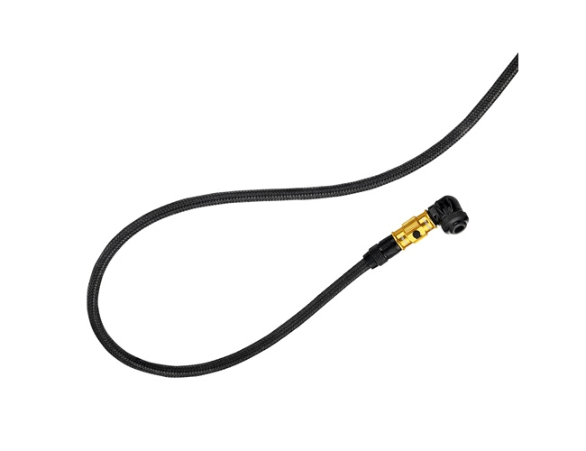 Mit Nylongeflecht veredelter Ersatzschlauch fuer Micro Floor und Standpumpen mit ABS Flip-Thread Chuck. Der ABS Air Bleed System Flip-Thread Chuck Ventilaufsatz wird einfach auf Presta- oder Schraderventile geschraubt. Durch betaetigen des ABS-Knopfes kann der Luftdruck aus dem Pumpenschlauch abgelassen werden, dadurch wird es leichter den Flip-Thread Chuck vom Ventil zu entfernen und es geht keine Luft verloren. Bei der Benutzung von Schraderventilen kann durch Druecken des ABS-Knopfes der Reifendruck reguliert werden.