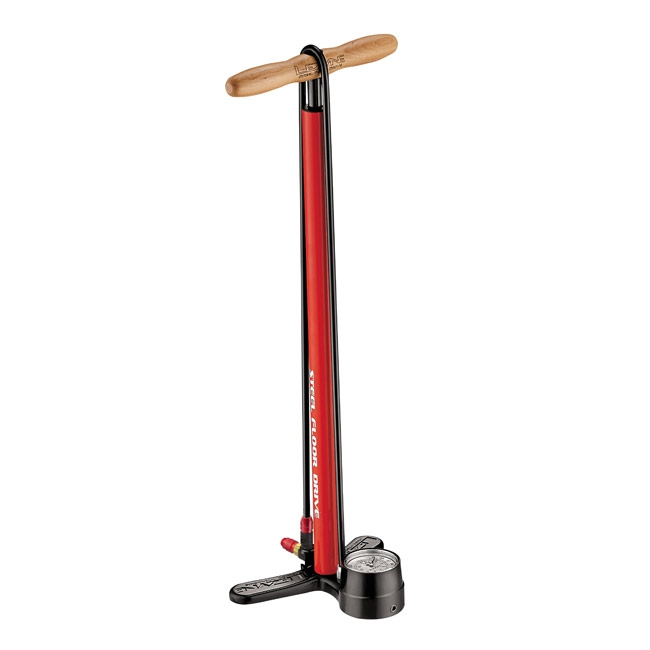 Die LEZYNE Steel Floor Drive ist eine Hochdruckpumpe mit einer Kolben/Kammer Kombination aus Stahl, einem glasierten Holzgriff, einem Aluminium Fuss und Anschluessen aus Composite Matrix. Der lange Gummischlauch und der ABS Flip-Thread Chuck erleichtern das Pumpen an Presta- oder Schraderventilen, auch wenn das Fahrrad in einem Staender haengt. Im Lieferumfang enthalten ist der Speed Chuck, welcher die Pumpe auch fuer Scheibenraeder kompatibel macht. Das 2,5 Zoll Manometer ist einfach abzulesen. Die Pumpe ist Rot lackiert, fuer Hatbarkeit und einen stilvollen Look.