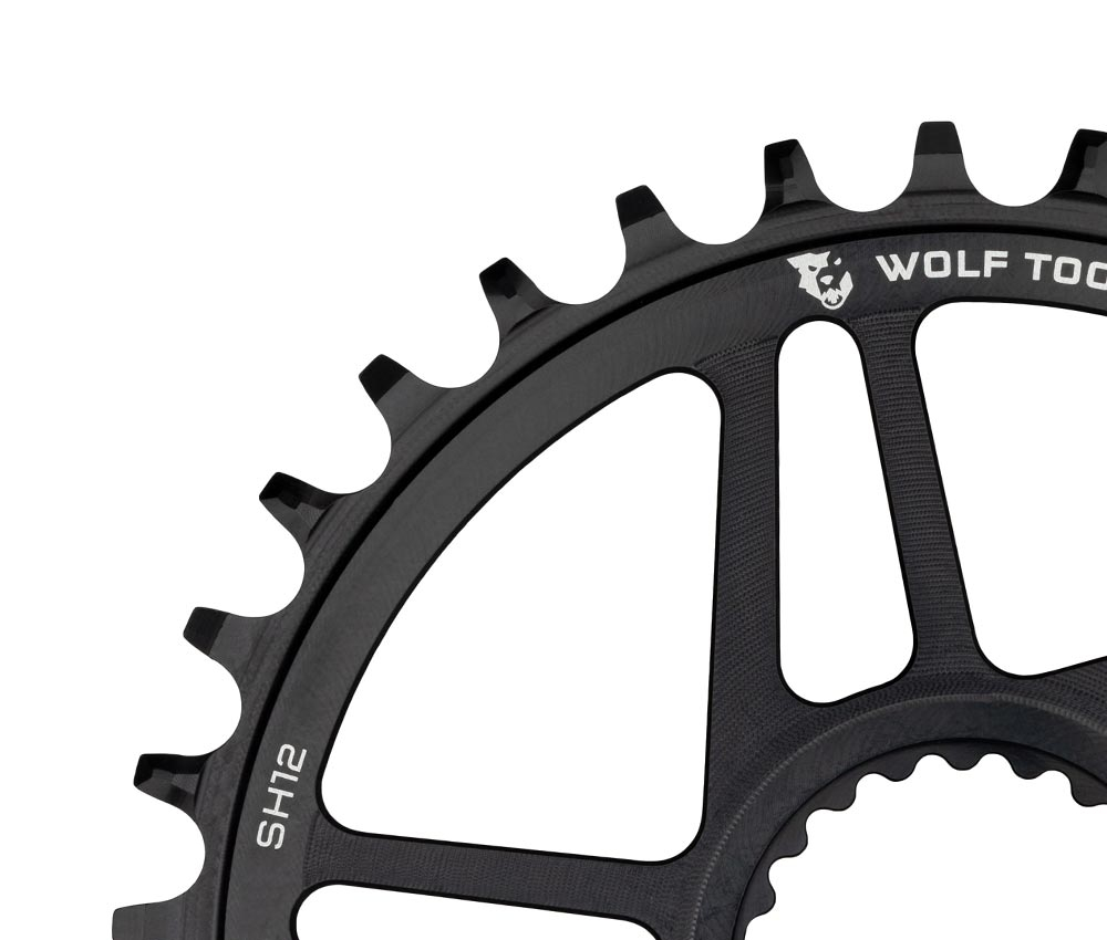 Durch die 12-fach Gruppen hat Shimano neue Standards bei Kettenblaettern und Ketten eingefuehrt. Diese sind aufeinander abgestimmt und nicht mit anderen Herstellern kombinierbar. Wolf Tooth hat dafuer die Drop Stop ST Technologie entwickelt und das passende 1-fach Kettenblatt was mit allen Shimano Direct Mount Kurbeln und 12-fach Shimano HG+ Ketten kompatibel ist.
