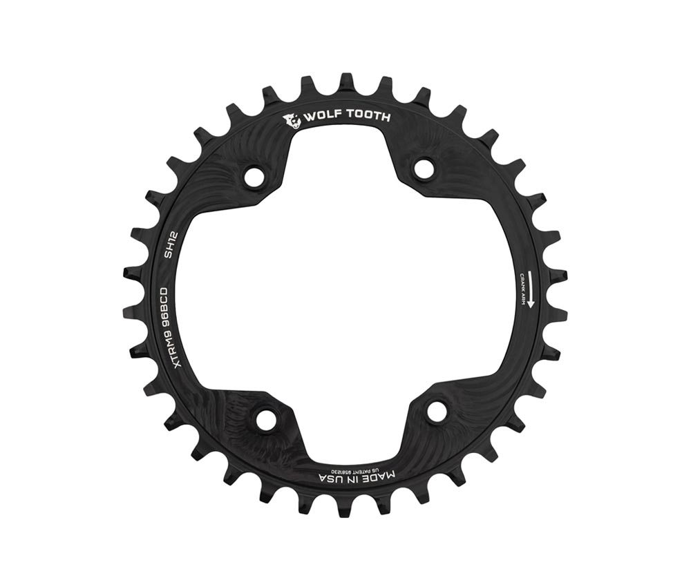 Das patentierte Drop Stop ST Narrow-Wide-Zahnprofil von Wolf Tooth bietet die ultimative Kettenfuehrung und Selbstreinigung fuer Shimano HG+ 12-fach Ketten. Die rechte Seite des Zahns ist so breit wie moeglich, um die Kontaktflaeche zur Kette zu maximieren. Mehr Kontaktflaeche bedeutet, dass die Belastung auf einer groesseren Flaeche verteilt wird, was wiederum den Verschleiss reduziert. Die linke Seite des Zahns ist schmaler als der Rollenstift der Kette, darum hat Wolf Tooth zusaetzliches Material entfernt, um einen Kanal zu schaffen damit Schmutz abfliessen kann. Mehr Kontaktflaeche und Platz bedeutet wiederum eine geringere Wahrscheinlichkeit das die Kette beim fahren durch Schmutz herunterfaellt.
