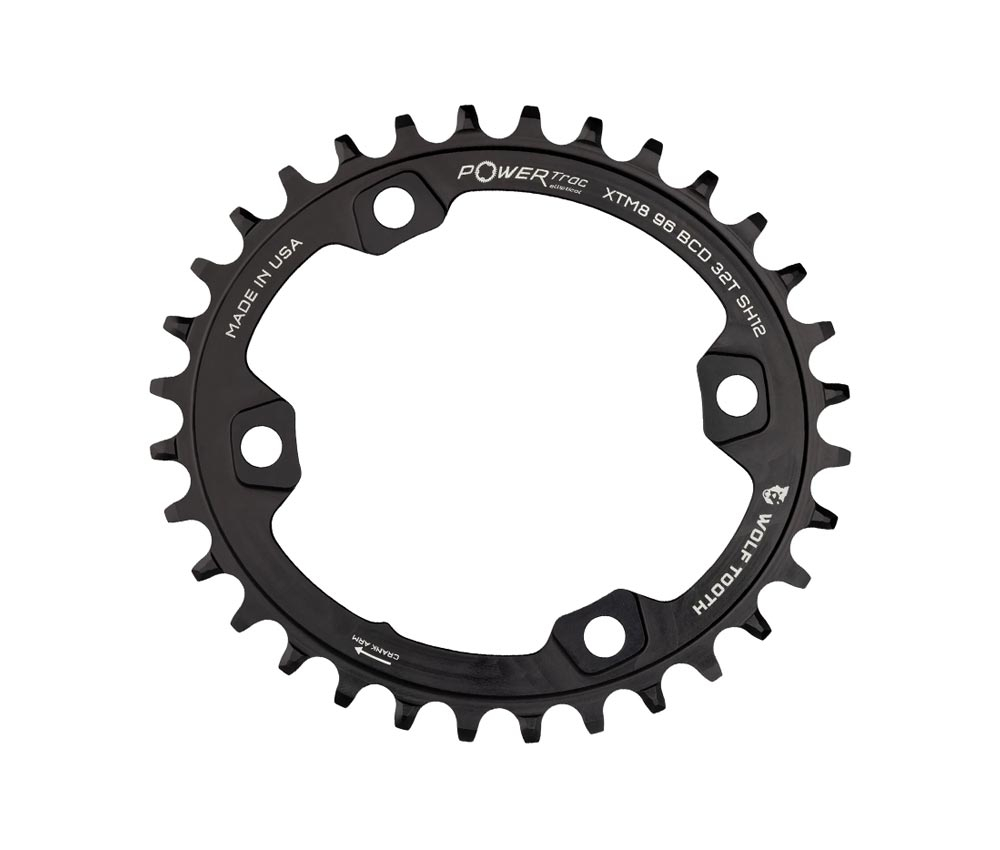 Das ovale 1-fach Kettenblatt wurde speziell fuer den Umbau von XT M8000, SLX M7000, Deore M6000 Kurbeln mit asymmetrischen 96 mm Lochkreis entwickelt. Damit lassen sich vorhandene Kettenblatt Kombinationen auf 1-fach Antrieb umruesten, was Gewicht spart und fuer eine aufgeraeumte Optik sorgt. ptik sorgt. Durch die PowerTrac Technologie ist das Kettenblatt 10 Prozent Oval und mit weniger aggressivem 112 Grad Timing ausgestattet. Es is mit allen 12-fach Shimano HG+ Ketten kompatibel.